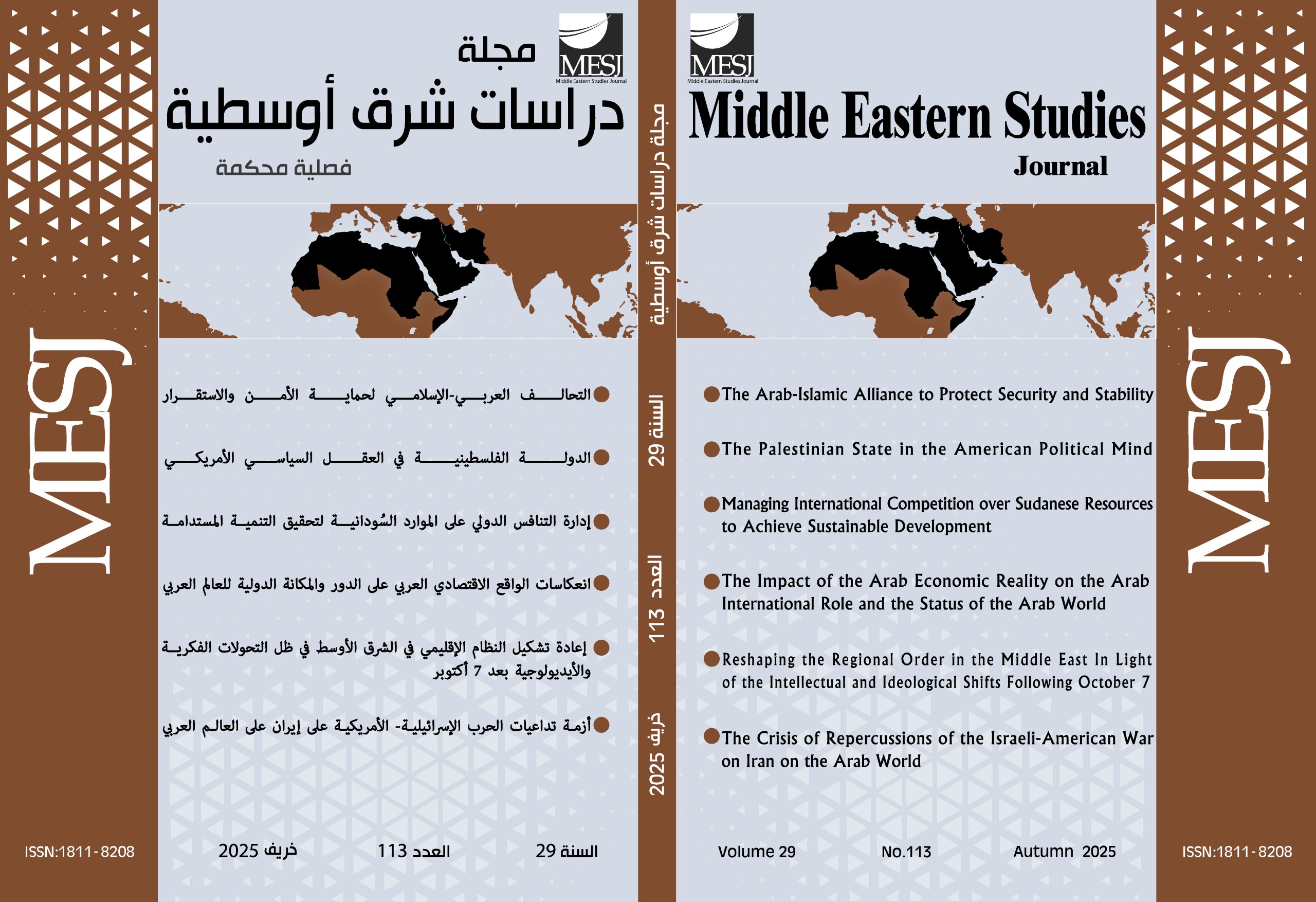 ضمن إصدارات مركز دراسات الشرق الأوسط/ الأردن وبالتعاون مع المؤسسة الأردنية للبحوث والمعلومات صدر العدد 113 من مجلة "دراسات شرق أوسطية" خريف 2025، وعالج موضوعات وقضايا متعددة وراهنة على ساحة العالم العربي والشرق الأوسط. يتناول المقال الافتتاحي "التحالف العربي- الإسلامي لحماية الأمن والاستقرار"، بالبحث والتمحيص الفكرة التي يجري تداولها بين القيادات العربية والإسلامية والتي بدأت بعض نتائجها تتحول إلى اتفاقات دفاعية واستراتيجية بين بعض الدول ثنائياً، والتي تهدف بمجموعها إلى تحقيق الأمن وحماية الاستقرار في العالم العربي وجواره الإسلامي، لا سيما بعد تصاعد التهديدات والمخاطر من قبل إسرائيل، وتوجيهها ضربات واسعة النطاق ومتفرقة جغرافياً ضدّ الدول العربية والإسلامية، وقد كشفت هذه الهجمات عن حقيقة المخاطر الوجودية والسيادية القائمة، والتي تشكّل تهديدات أمنية حقيقية، وتؤسس لحالة من عدم الاستقرار طويل الأمد في المنطقة، كما أنها ستمنح إسرائيل اليد الطولى لفرض هيمنتها على المنطقة بالقوة والتهديد والعنف، غير آبهة بالقرارات والمواثيق الدولية. وتهدف الدراسة الأولى في العدد بعنوان "الدولة الفلسطينية في العقل السياسي الأمريكيّ"، والتي أعدّها الدكتور عمر رحّال- أستاذ علم الاجتماعي السياسي من فلسطين، إلى تحليل التناقض الصارخ بين الخطاب الأمريكي المعلن الداعم لحل الدولتين كوسيلة لحل الصراع الإسرائيلي الفلسطيني، والسياسات الفعلية التي تنفذها واشنطن والتي تعرقل هذا الحل بشكل منهجي. يتجلى هذا التناقض في الدبلوماسية الأمريكية، واستخدام حق النقض في مجلس الأمن، وفرض شروط تفاوضية متحيزة لصالح إسرائيل باستمرار. وناقش بحث "إدارة التنافس الدوليّ على الموارد السُودانية لتحقيق التنمية المستدامة"، والذي أعده الأستاذ محمد أبو بكر محمود- باحث في العلاقات الدولية والسياسة الخارجية من السودان، السياسة الخارجية السودانية في ظل التحولات الراهنة باعتبارها محوراً استراتيجياً لإدارة التنافس الدولي على الموارد، مع التركيز على الأبعاد الجيوسياسية والجيو- أمنية التي تؤثر على موقع السودان في الساحة الإقليمية والدولية. كما سلط الضوء على التحديات والفرص التي تواجه السودان، خاصة في سياق التنافس الدولي والإقليمي، وأهمية تعزيز الشراكات الاستراتيجية لتحقيق التنمية المستدامة والاستقرار السياسي. وقد اعتمد البحث استراتيجية "الجسر والمورد" كمفهوم محوري، مما يعزز دور السودان كحلقة وصل استراتيجية بين القوى الدولية والدول المجاورة. تُمكّن هذه الاستراتيجية السودان من الاستغلال الأمثل لموارده الطبيعية وموقعه الجغرافي في ظل التنافس الدولي. ويقدم البحث في نهاية المطاف رؤية متكاملة لإدارة التحديات الجيوسياسية والجيوأمنية. تجمع هذه الرؤية بين الأطر النظرية للعلاقات الدولية والنهج الدبلوماسي، وتُوازن هذه الأداة المُركّبة بين المصالح الوطنية والتكامل الإقليمي لتعظيم الاستفادة من موقع السودان الجغرافي وموارده. في حين سعت دراسة "انعكاسات الواقع الاقتصادي العربي على الدور والمكانة الدولية للعالم العربي"، التي أعدّها كلّ من أستاذ العلوم المالية العامة في كلية الدراسات العليا في الجامعة العربية الأمريكية وجامعة بيرزيت، ومدير عام مؤسسة كفاءة للاستشارات المالية الدكتور نصر عبد الكريم- فلسطين، والباحثة الاقتصادية والاجتماعية وعضو جمعية الاقتصاديين الفلسطينيين الأستاذة إخلاص طملية- فلسطين، سعت إلى مقاربة تحليلية معمّقة للواقع الاقتصادي في الدول العربية خلال العقدين الأخيرين، في سياق ما يشهده النظام الدولي من تحوّلات بنيوية على الصعيدين الاقتصادي والجيوسياسي. وتنطلق الدراسة من فرضية مركزية مفادها أن تباين المسارات التنموية بين الدول العربية، وانكشاف معظمها على صدمات خارجية، قد حال دون بناء قاعدة إنتاجية قادرة على تمكين موقعها في النظام العالمي. فيما تناول البحث الأخير في باب ال